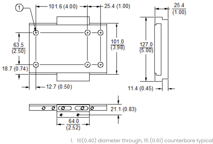 Минимальная ширина 89,4 мм (3,52 дюйма) плюс для удаления требуется дополнительная 3,05 мм (0,12 дюйма).