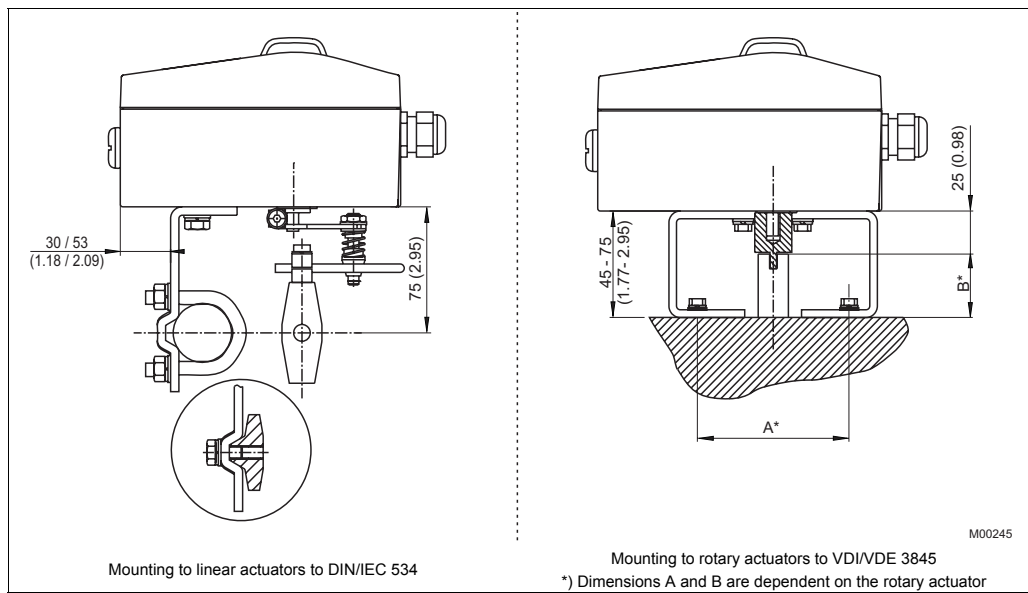 TZIDC поддерживает различные варианты монтажа для различных типов приводов.