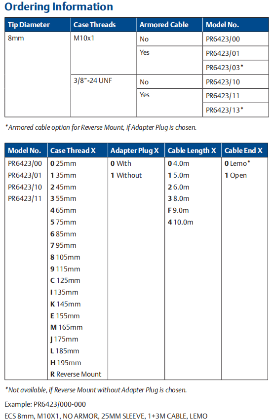Датчик. Степень защиты IP66, диапазон рабочих температур от -35°C до +180°C, корпус из нержавеющей стали и высокотемпературный кабель из ПТФЭ позволяют устанавливать PR6423/016-030+CON021 непосредственно в суровых условиях вблизи высокотемпературных коробок подшипников или в паровых средах.