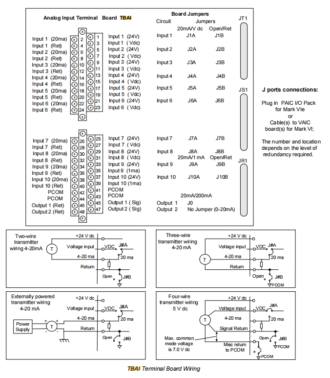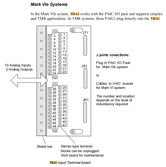 Поддержка операций горячей замены. В системах Mark VIe, оснащенных резервными модулями VAIC, если необходимо заменить саму клеммную колодку TBAI, ее можно отсоединить от витого кабеля и заменить во время работы системы, что обеспечивает истинное «нулевое время простоя» обслуживания при соблюдении строгих процедур безопасности.