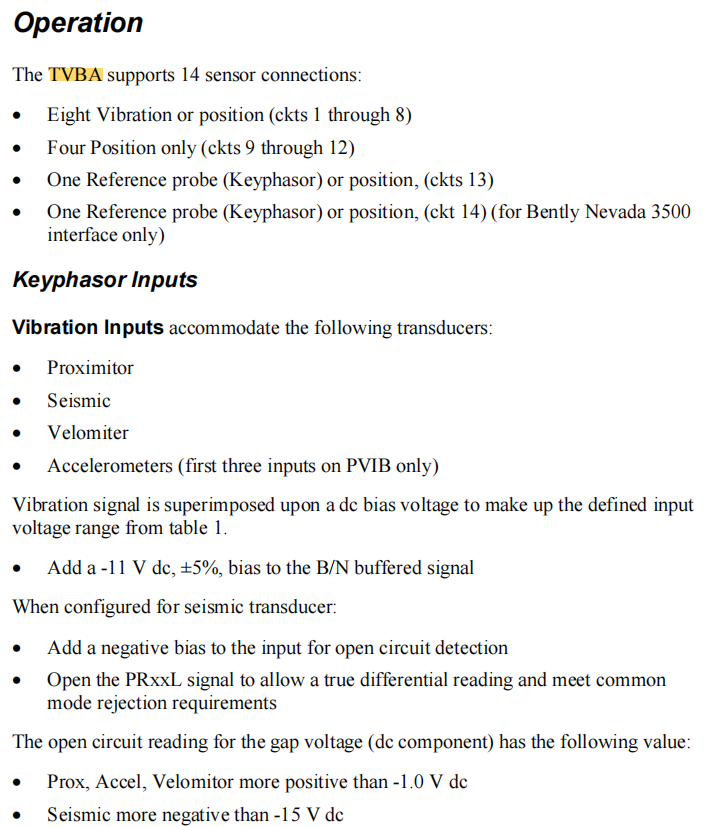 Встроенная обработка Встроенный микропроцессор, выполняющий самопроверку, преобразование сигнала, упаковку данных и т. д., а также загрузку необработанных значений напряжения и состояния диагностики в контроллер. Примечание TVBA сам по себе не выполняет БПФ или расчеты сигналов тревоги; это выполняет контроллер