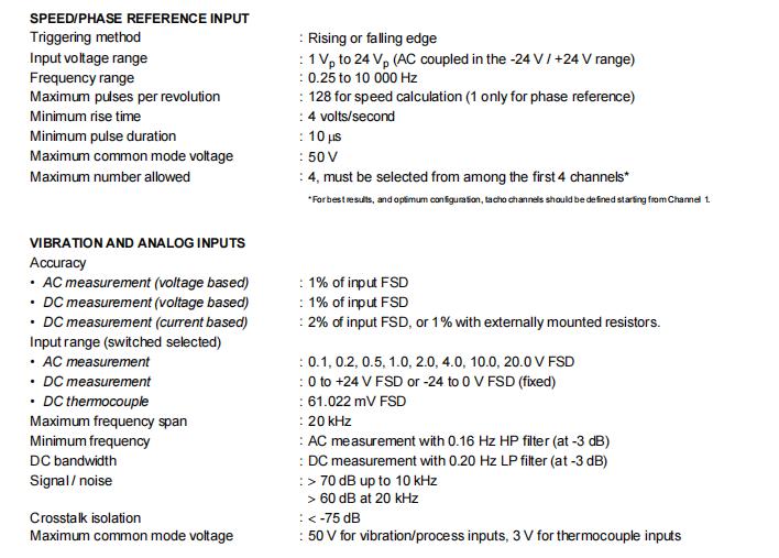 Первые 4 канала могут быть выбраны в качестве тахо или динамического (то есть вибрация), и последние 12 могут быть выбраны в качестве динамического или процесса