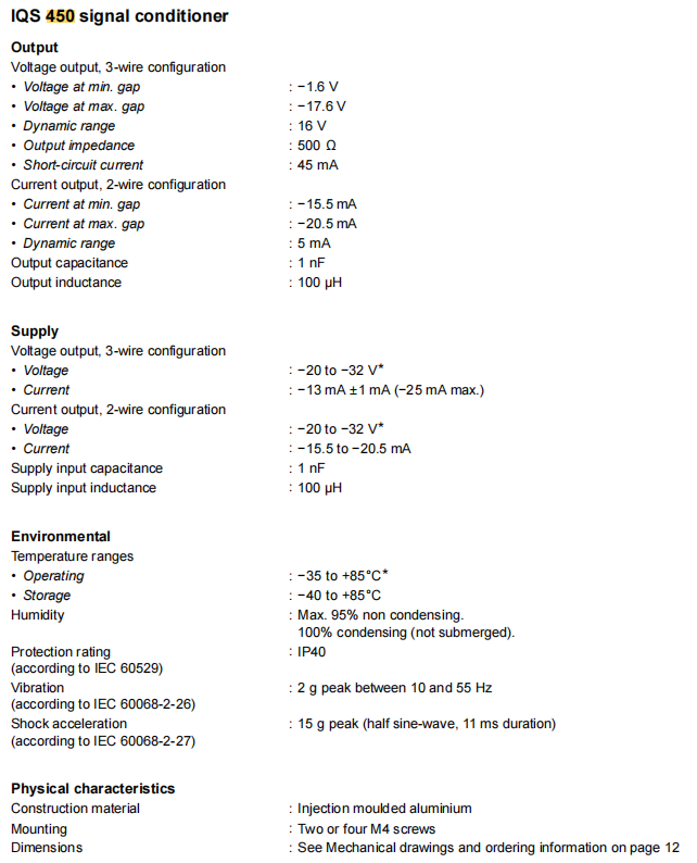 IQS450 — это основной преобразователь сигнала в линейке продуктов VM, специально разработанный для использования с бесконтактными датчиками серии TQ400. Основной формирователь сигналов представляет собой комплексную систему измерения приближения и является ключевым компонентом для защиты и безопасной эксплуатации вращающихся механизмов.