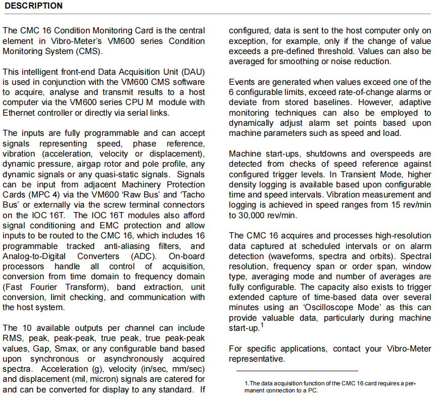 Архитектура DSP + MCU позволяет CMC16 выполнять большинство вычислительных задач локально, загружая только ценные значения характеристик или тревожные события вместо необработанных сигналов, что значительно экономит пропускную способность сети и ресурсы компьютера.